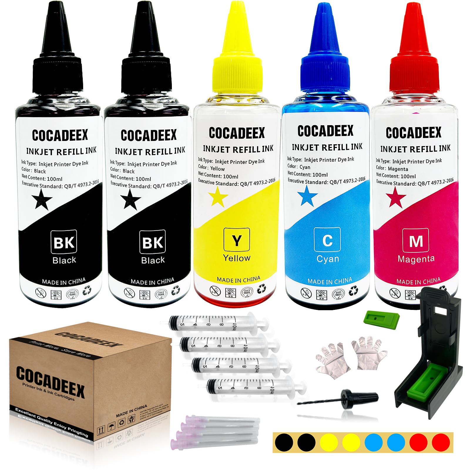 Kit Recharge Encre 500 Ml Pour Cartouches HP 308/308XL - Compatible Imprimantes Envy 6122e, 6532e, Etc. - Noir, Cyan, Magenta, Jaune - Outils Inclus