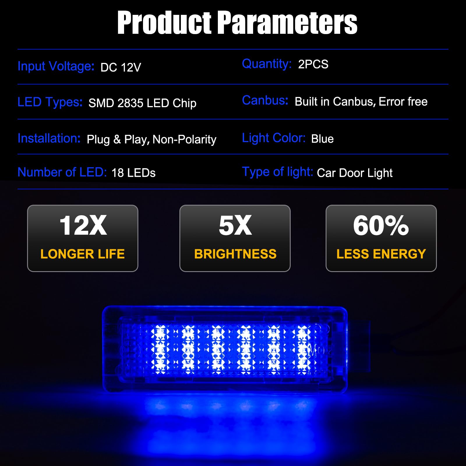 2 Éclairages Porte Voiture LED Bleu Pour BMW Série 1/2/3/4/5/7/X1/X3/X4 - 6000K, Plug & Play, Canbus, Étanche