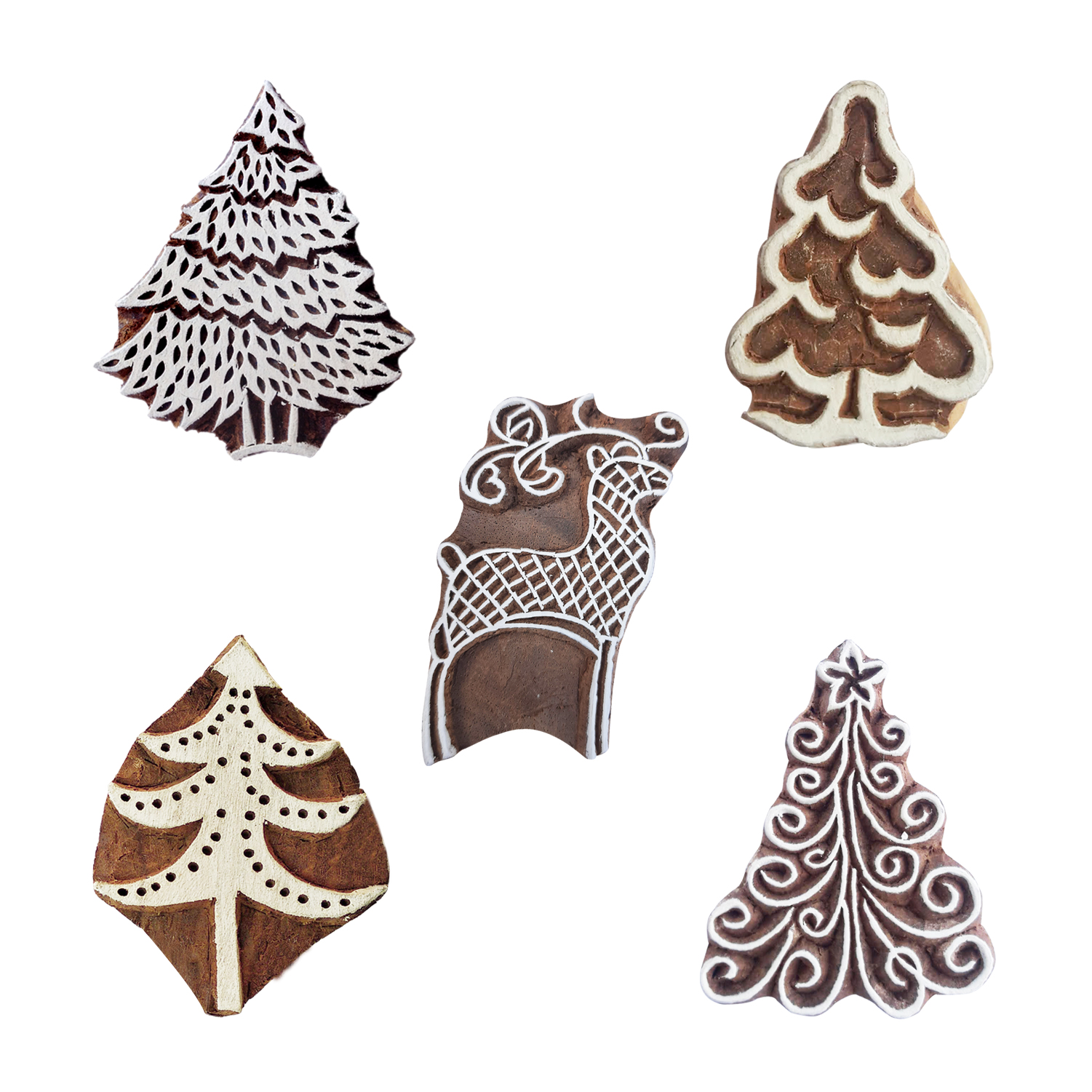 Set De 6 Tampons En Bois Motifs Bordures Et Spirales - Pour Impression Sur Tissu, Papier, Argile, Artisanal