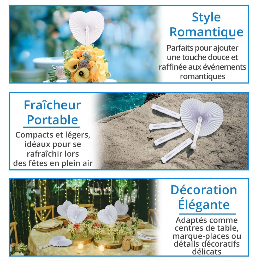 Éventails Mariage En Forme De Cœur KIRZAX - Lot De 10, Blanc, Décoration Romantique Pour Mariage Ou Fête