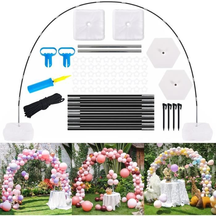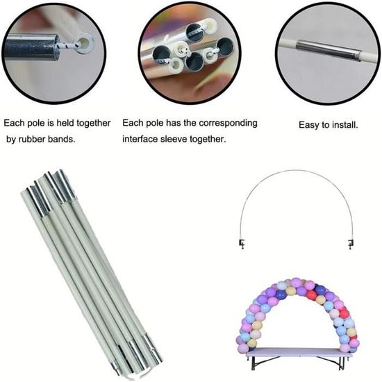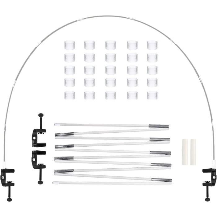 Pour décorer vos tables d'événements, ce support d'arche en métal est parfait ! Il mesure environ 280 cm de largeur et 100 cm de hauteur une fois assemblé. La structure est réglable et se fixe facilement aux bords de la table avec des pinces (serrage manuel). Il supporte jusqu'à 8 kg, donc vous pouvez y accrocher des guirlandes de ballons, des fleurs artificielles, des lumières ou des rubans. Réutilisable à l'infini, il convient pour les mariages, les anniversaires, Noël, Halloween, ou même pour un fond photo en magasin. Montage simple, démontage rapide. Un accessoire polyvalent pour toutes vos fêtes.