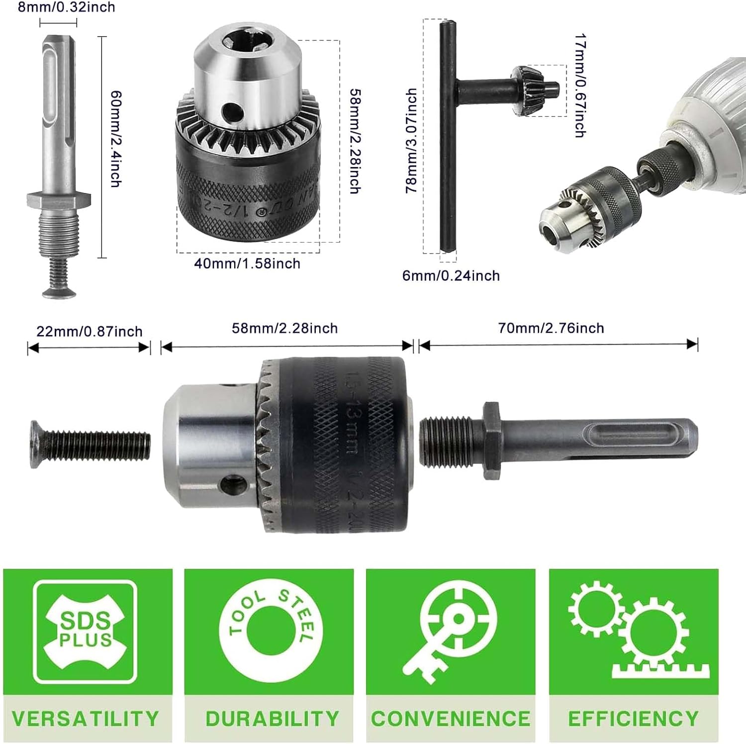 Filetage 1/2-20 UNF Adaptateur SDS Mandrin Autoserrant 1,5-13 Mm Avec Adaptateur SDS - 4 Pièces - Filetage 1/2-20 UNF - Compatible Perceuse électrique, Percussion Mandrin Autoserrant 1.5-13mm