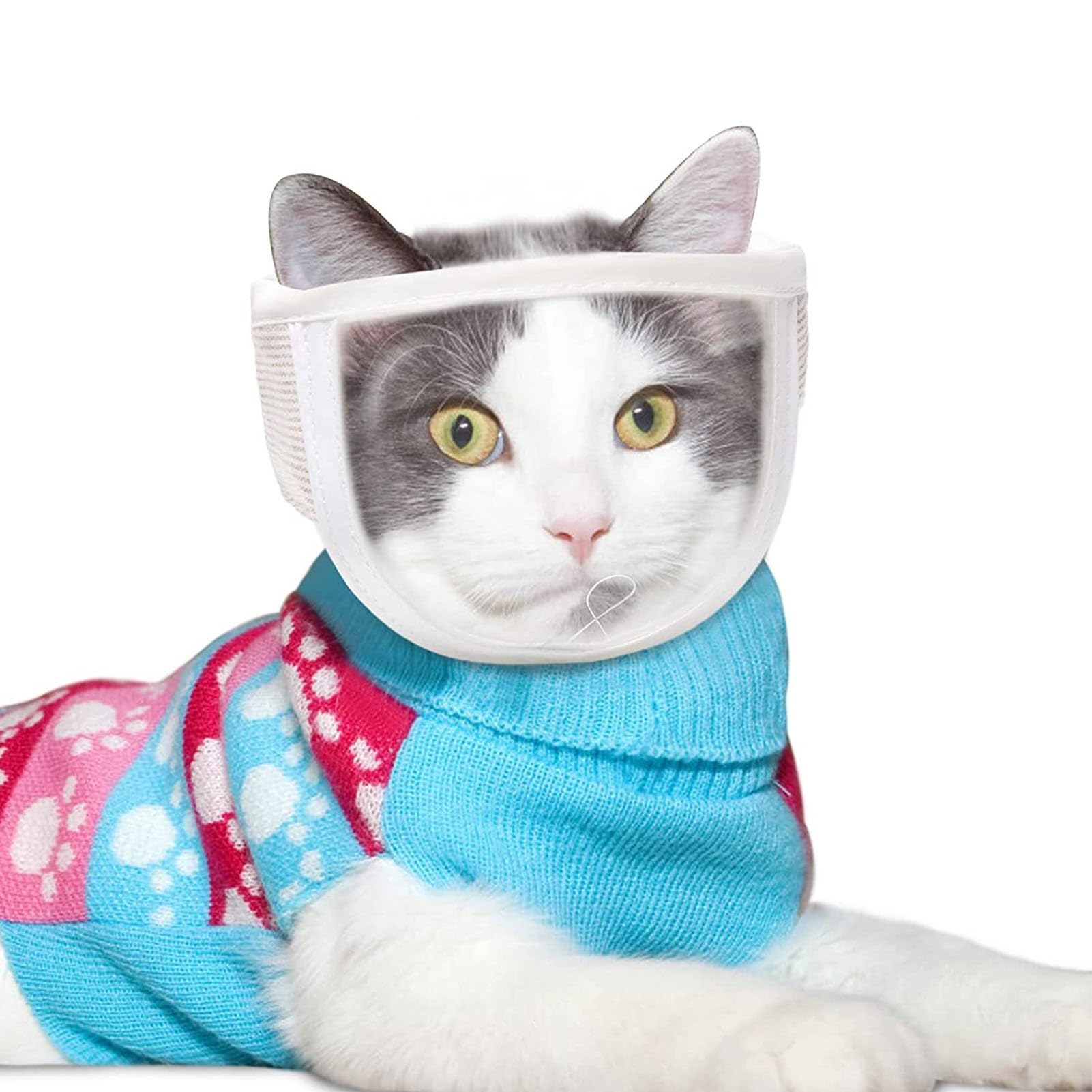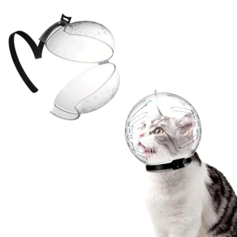 3M Tear Off Lens Cache-Bouche Pour Chat Transparent - Taille M (3-5 Kg), Polypropylène, Réglable, Trous Respirants, Pour Soins Et Bain Protection Morsure Chat Transparente