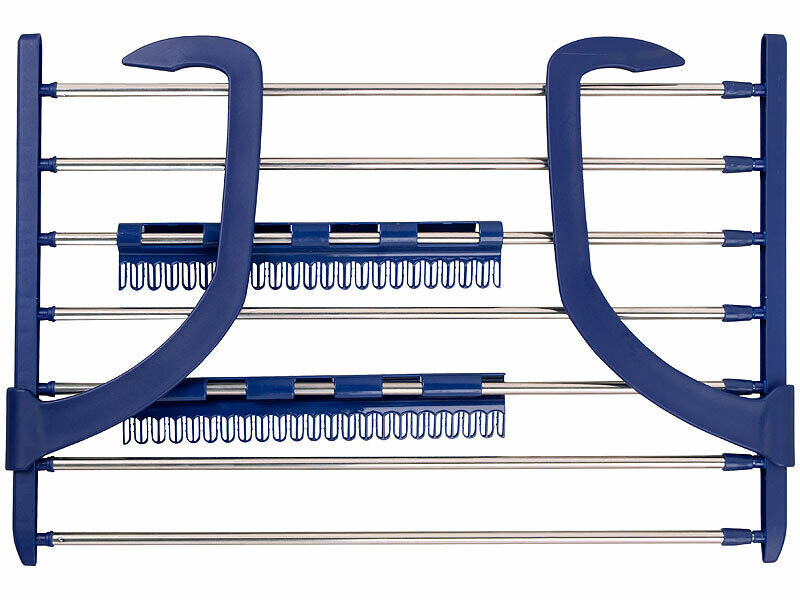 Ce petit étendoir de 40 x 37 x 18 cm est parfait si tu manques de place ! Tu peux le poser sur un radiateur, un appui de fenêtre, un balcon… Il se plie facilement pour le ranger dans un placard. En acier inoxydable, il résiste à la rouille et supporte jusqu’à 10 kg – assez pour quelques vêtements, des serviettes, des chaussettes. Il a même des barres supplémentaires pour accrocher les sous-vêtements ou les petites pièces. Légèrement surélevé, il laisse circuler l’air pour un séchage plus rapide. Idéal pour les studios, les appartements sans balcon, les étudiants, ou en appoint quand la météo ne permet pas d’étendre dehors. Tu peux aussi l’utiliser en extérieur (terrasse, jardin) sans qu’il ne rouille. Montage simple, pas d’outil nécessaire. Si tu en as marre des cintres qui tombent du radiateur ou des cordes à linge qui prennent trop de place, ce séchoir compact est la solution. Pratique, solide, et pas cher – que demander de plus ?
