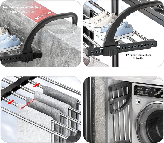 Étendoir Radiateur Pliable 40 Cm – Pour Balcon, Intérieur/extérieur, Acier Inoxydable, Capacité 10 Kg