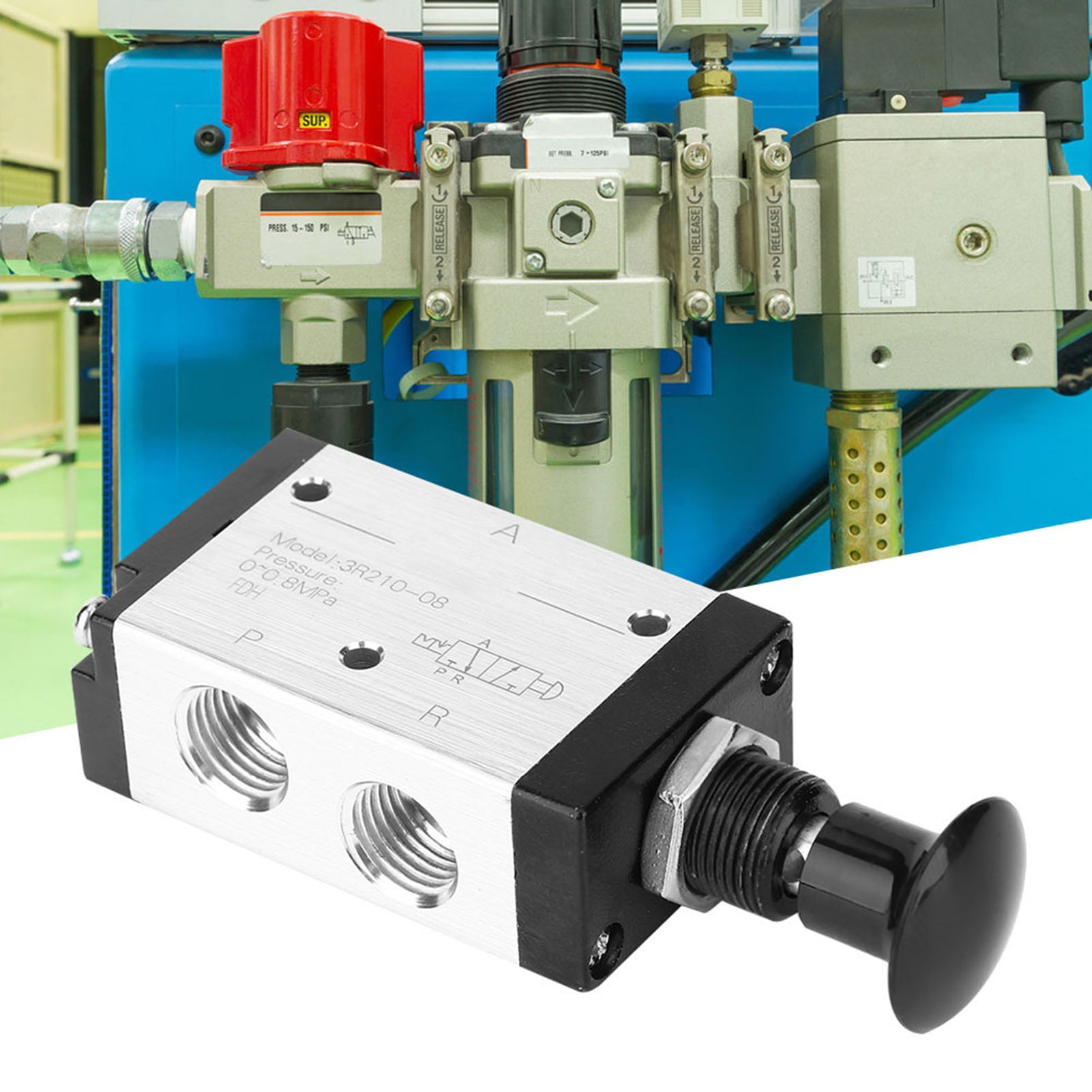Valve Pneumatique 3R210-08 - 3 Voies 2 Positions, PT1/4, Normalement Fermée, Pour Air, Plage 0.15-0.8 MPa - Commande Manuelle