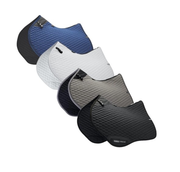 Pour les cavaliers qui cherchent à améliorer l’ajustement de leur selle, le tapis de dressage Stübben Adjuster est une solution maligne. Il est doté de quatre poches dans lesquelles tu peux insérer des mousses de 7mm (fournies) pour soulever légèrement la selle aux endroits nécessaires – super pratique si tu utilises la même selle sur plusieurs chevaux ou pour corriger de petits déséquilibres. Il est en coton/polyester avec un bord en velours doux (sauf version blanche en poly-coton), une zone renforcée au niveau de la sangle et du garrot, et des boutons-pression pour l’attacher aux anneaux du collier. Le système Streamline inclus se fixe sous la selle pour éviter tout glissement. C’est confortable pour le cheval, stable, et ça permet d’affiner l’assise sans investir dans une nouvelle selle. Un accessoire pro pour des séances de travail plus précises et harmonieuses.