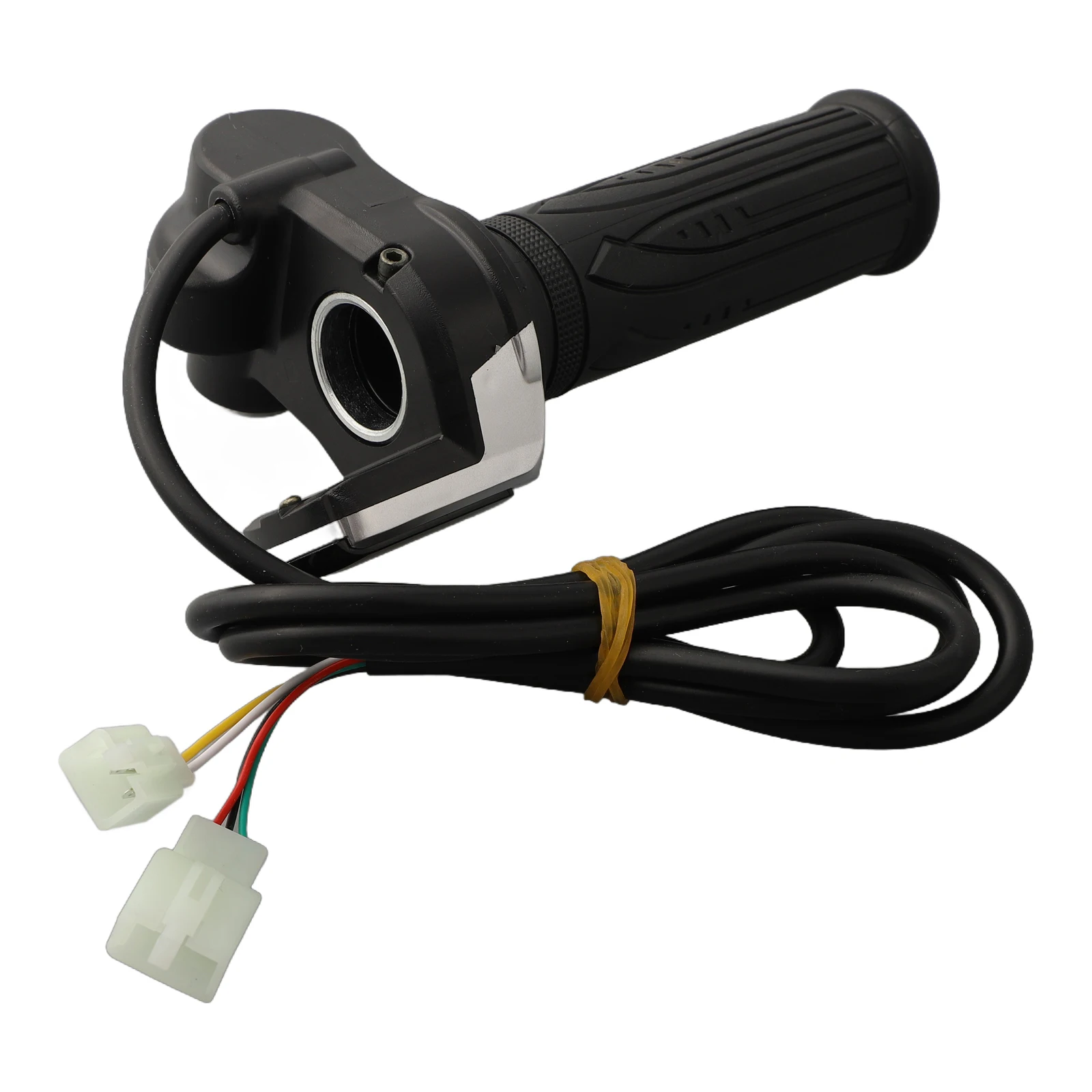 Votre scooter ou vélo électrique a un moteur à balais (brossé) et la manette d’accélérateur est HS ? Cette poignée de remplacement est compatible avec une large gamme de tensions et de puissances : 24V, 36V, 48V, et supporte les moteurs de 250W à 1000W. Parfaite pour les modèles courants de scooters électriques et vélos électriques d’entrée de gamme.\n\nFabriquée en acier, elle est robuste et conçue pour résister à une utilisation intensive. Le design est simple : une poignée tournante ou à gâchette (selon modèle) qui envoie un signal au contrôleur pour réguler la vitesse.\n\nAvant de commander, assurez-vous que votre moteur est bien de type brossé (pas un brushless) et vérifiez la compatibilité de la connectique. L’installation est généralement straightforward : démonter l’ancienne, brancher les câbles, fixer sur le guidon.\n\nUne pièce essentielle pour retrouver le contrôle de votre vitesse. Si votre accélérateur ne répond plus, grince, ou a un jeu anormal, cette manette de rechange peut vous remettre en selle rapidement. 🛴⚡