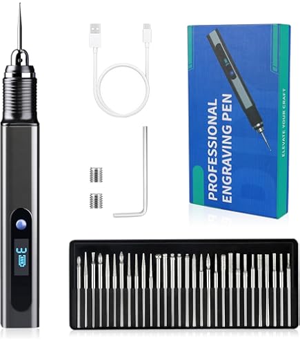 Stylo De Gravure TUBINOONE Portable Sans Fil - 30 Embouts, 3 Vitesses (8000-21000 Tr/min), Rechargeable USB-C - Pour Bois, Métal, Verre, Céramique